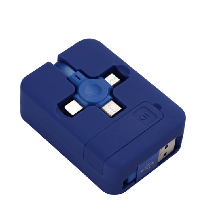 019-1 3 in 1 USB to 8 Pin + Micro USB + USB-C / Type-C Macaron Telescopic Data Cable with Storage Slot & Bracket, Cable Length: 1m (Blue)