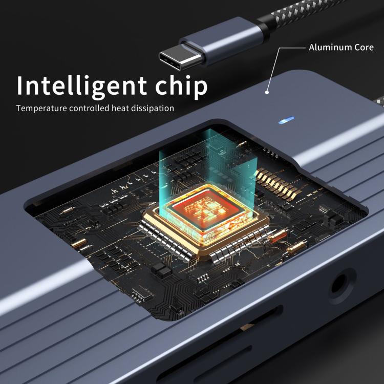 1. 10-in-1 multifunctional Type-C docking station specifically designed for laptops and tablets, featuring a USB-C 3.1 interface and integrating 10 commonly used ports within a compact body.