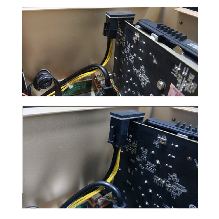 4. Here are two types of graphics card power steering adaptors, PH38A and PH38B. The former clips on top(up angled) and the latter clips on the bottom(down angled).