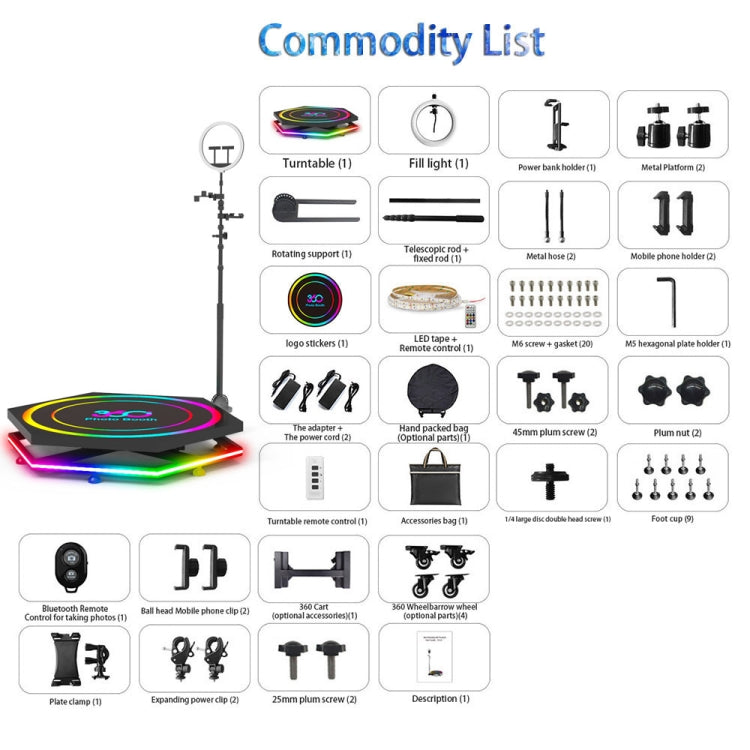 100cm Hexagonal 360 Photo Booth Electric Rotating Small Stage For Parties and Weddings