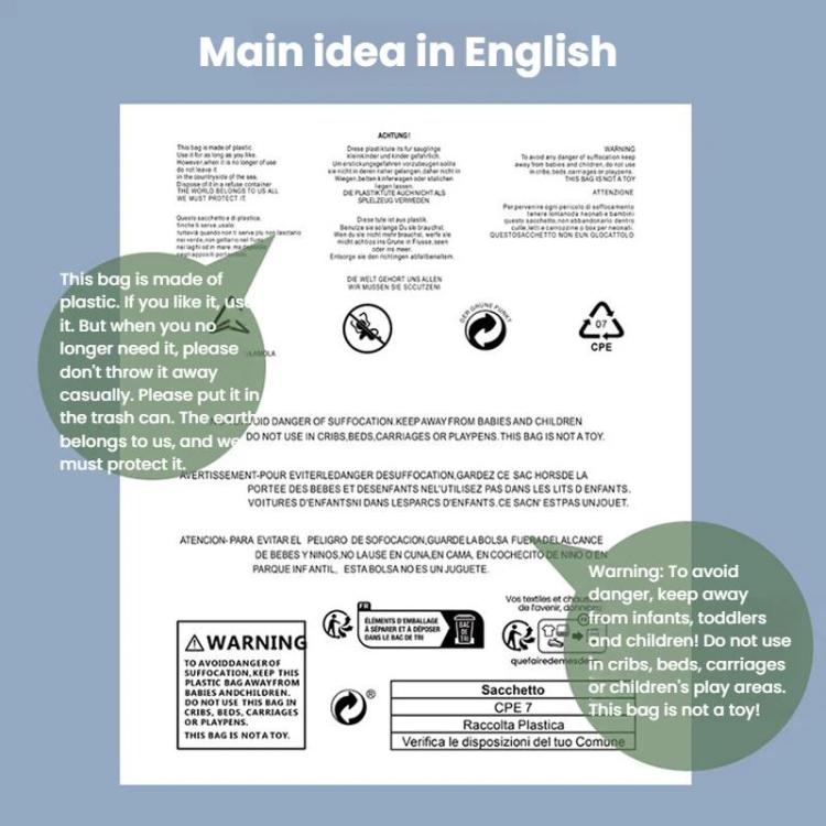 100pcs Warning Label Zipper Bag Clothing Sock Packaging Bag, Spec: Transparent 20 x 30cm