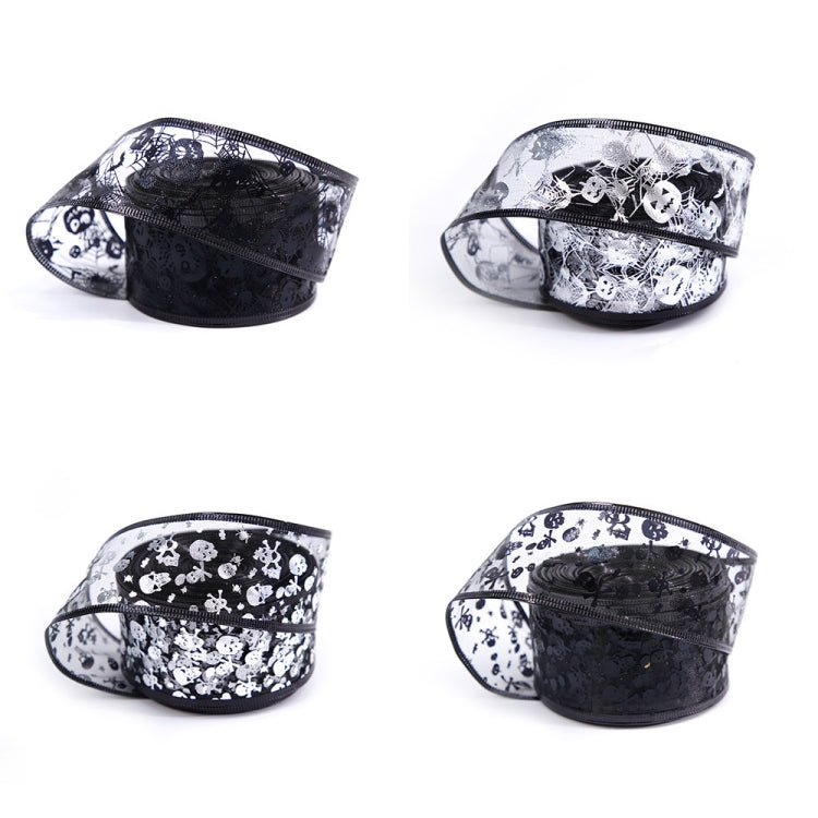 10m Halloween Decoration Gold-stamped Cartoon DIY Bow Ribbon(Black Skeleton)