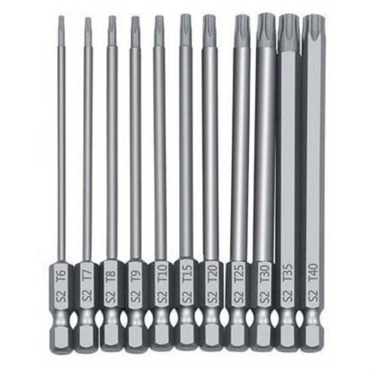 2. Specifications: 50mm including T5/T6/T7/T8/T9/T10/T15/T20/T25/T27/T30/T40, 75 mm and 100 mm including T6/T7/T8/T9/T10/T15/T20 /T25/T30/T35/T40, the diameter of the handle is 6.3 mm on both sides