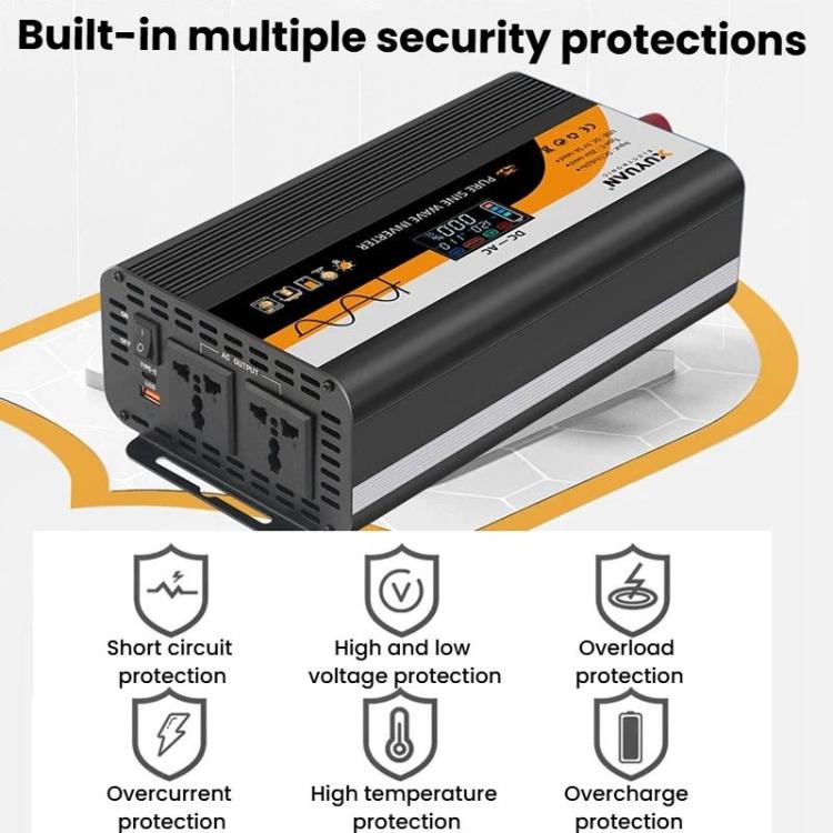 12V / 24V To 220V Pure Sine Wave Inverter Universal Car Power Converter, Spec: 800W Black