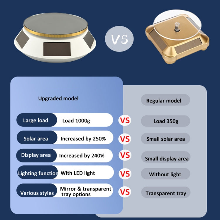 14cm Solar Energy Spinning Display Stand with LED Light for Jewelry Crystal Product Display, Style: White Transparent