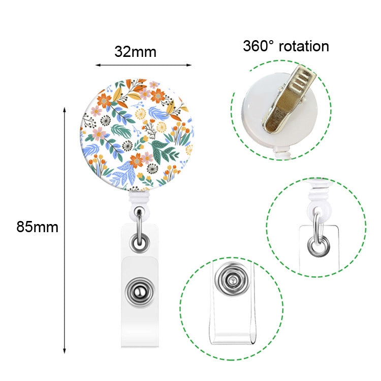 2 PCS Retro Fresh Small Floral Retractable Badge Reel Name Tag Card Badge(No. 5)