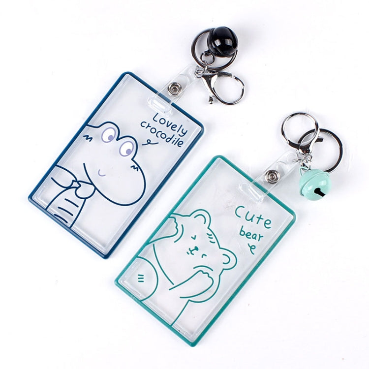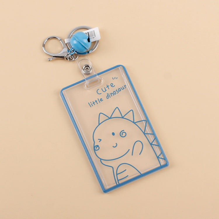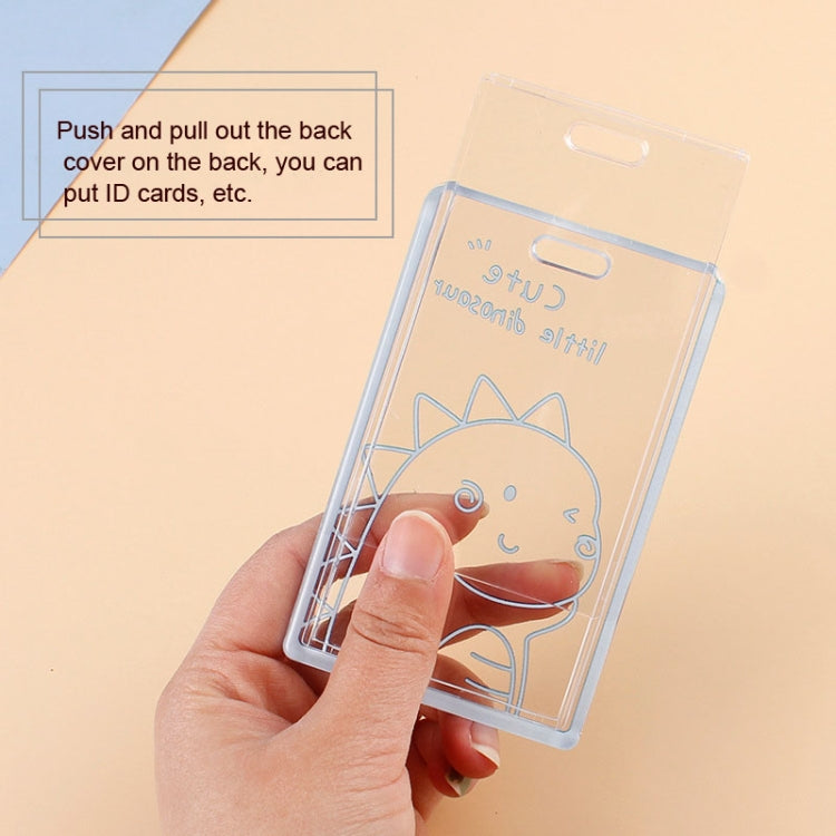 2 PCS Transparent Acrylic Push Pull Card Sleeve Bell Keychain Ring ID Card Sleeve(Dinosaur)