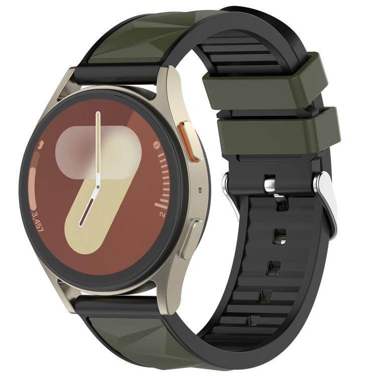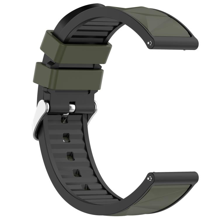 20mm Ice Crystal Texture Silver Pin Buckle Dual Color Silicone Watch Band(Army Green Black)
