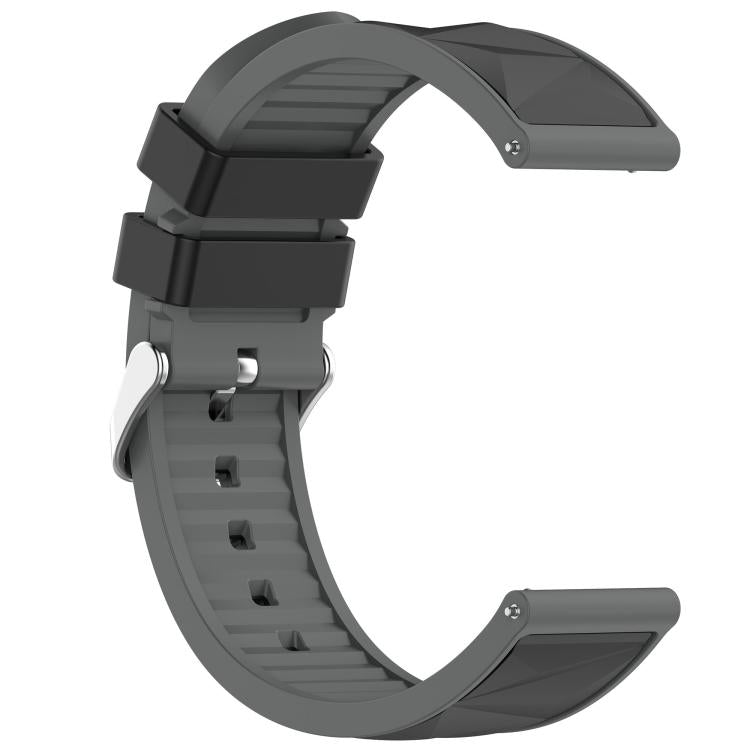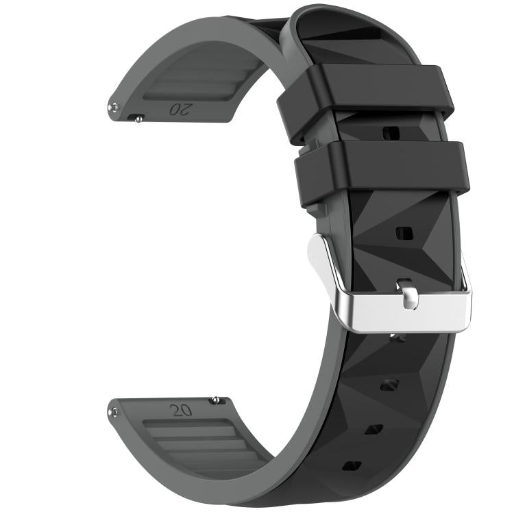 20mm Ice Crystal Texture Silver Pin Buckle Dual Color Silicone Watch Band(Black Grey)