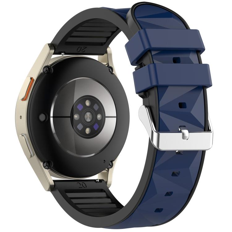 20mm Ice Crystal Texture Silver Pin Buckle Dual Color Silicone Watch Band(Midnight Blue Black)