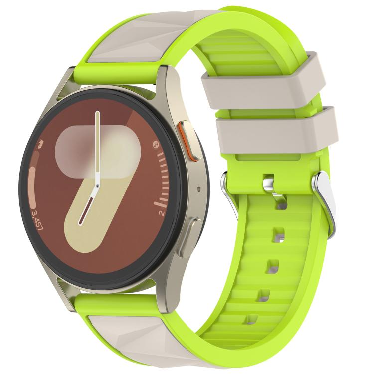 20mm Ice Crystal Texture Silver Pin Buckle Dual Color Silicone Watch Band(Starlight Green)