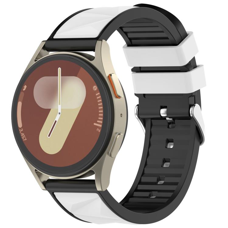 20mm Ice Crystal Texture Silver Pin Buckle Dual Color Silicone Watch Band(White Black)