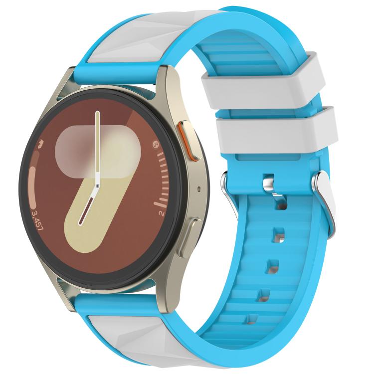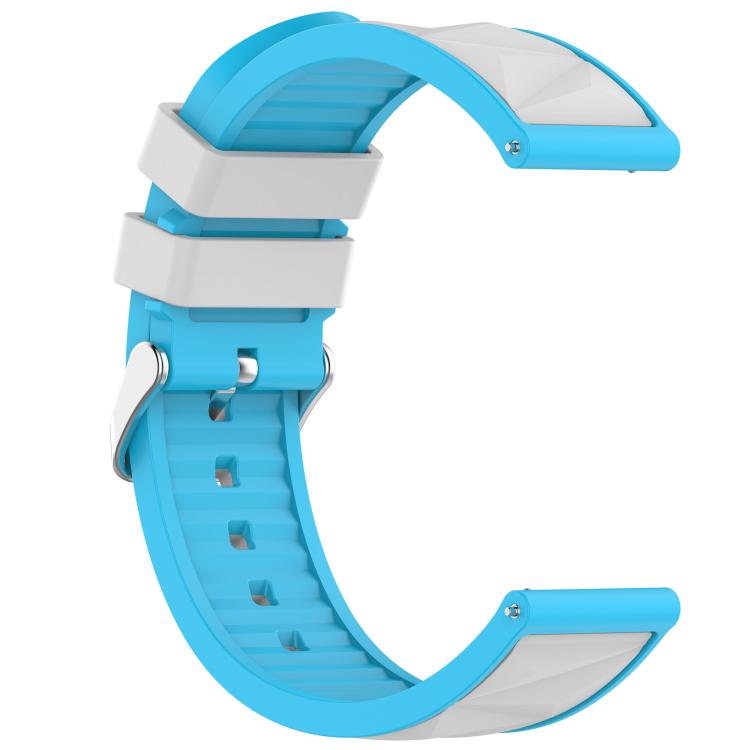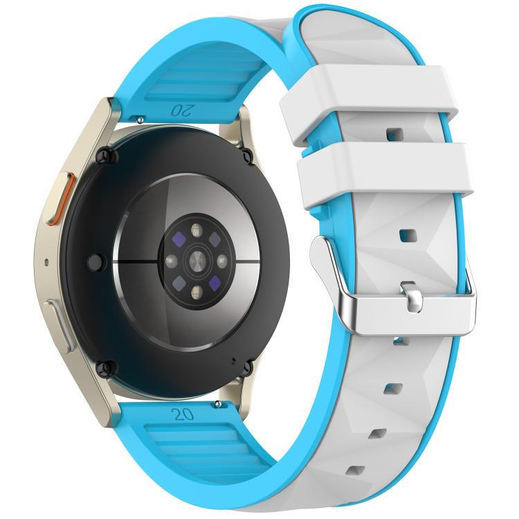20mm Ice Crystal Texture Silver Pin Buckle Dual Color Silicone Watch Band(White Sky Blue)