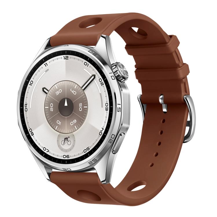 20mm Ladder Buckle Solid Color Holes Silicone Watch Band(Brown)