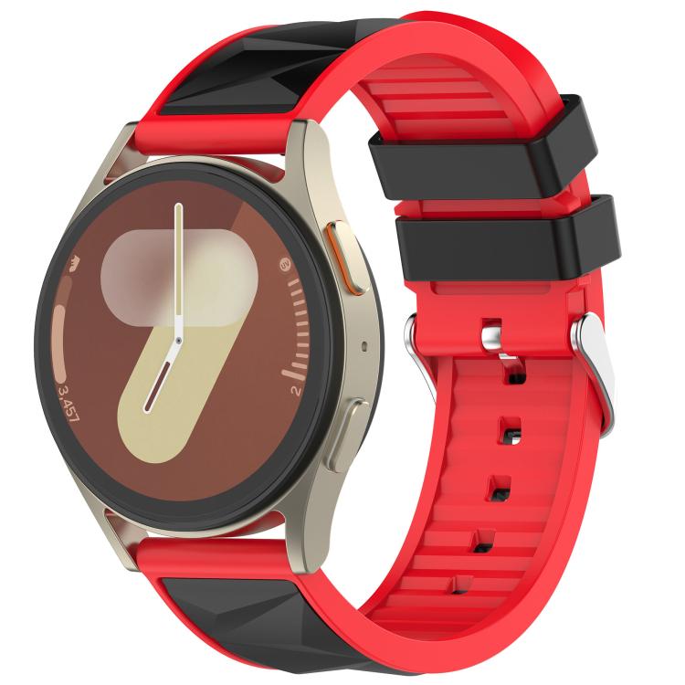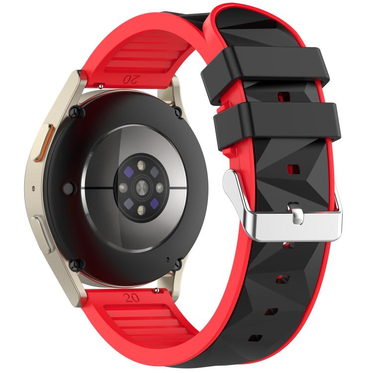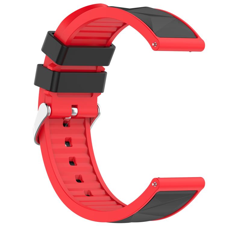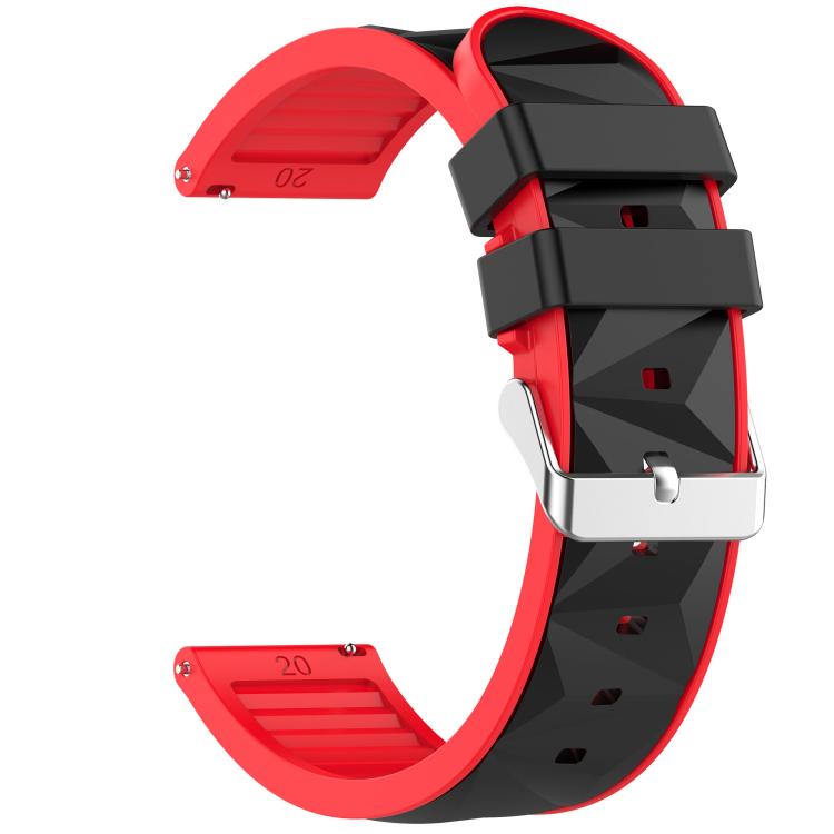 22mm Ice Crystal Texture Silver Pin Buckle Dual Color Silicone Watch Band(Black Red)