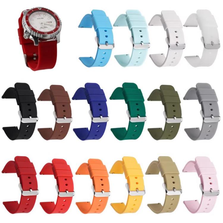 24mm Stainless Steel Silver Pin Buckle Solid Color Silicone Waterproof Watch Band(Dark Red)