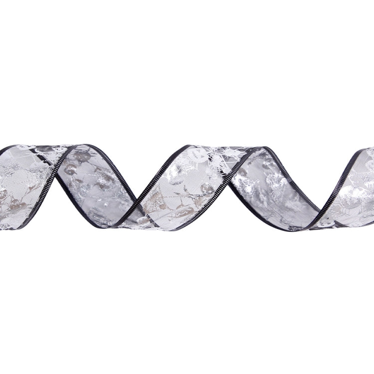 2m Halloween Decoration Gold-stamped Cartoon DIY Bow Ribbon(Silver Pumpkin Spider Web)