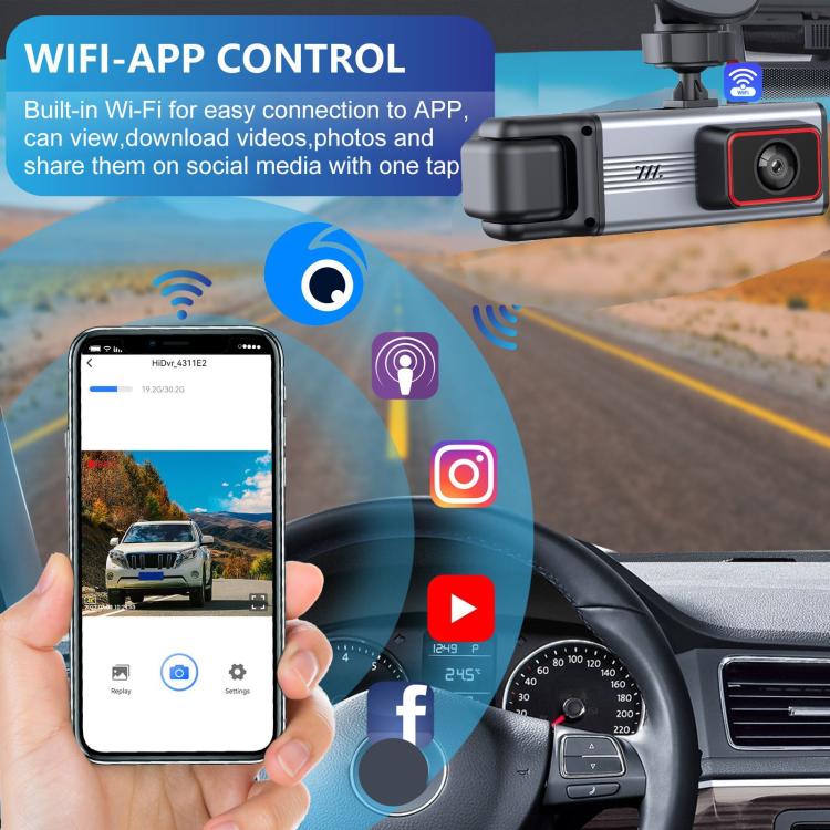 3.16-inch HD 1080P Infrared Night Vision Car DVR, Specification: Front + Interior + Rear + Wi-Fi Connectivity