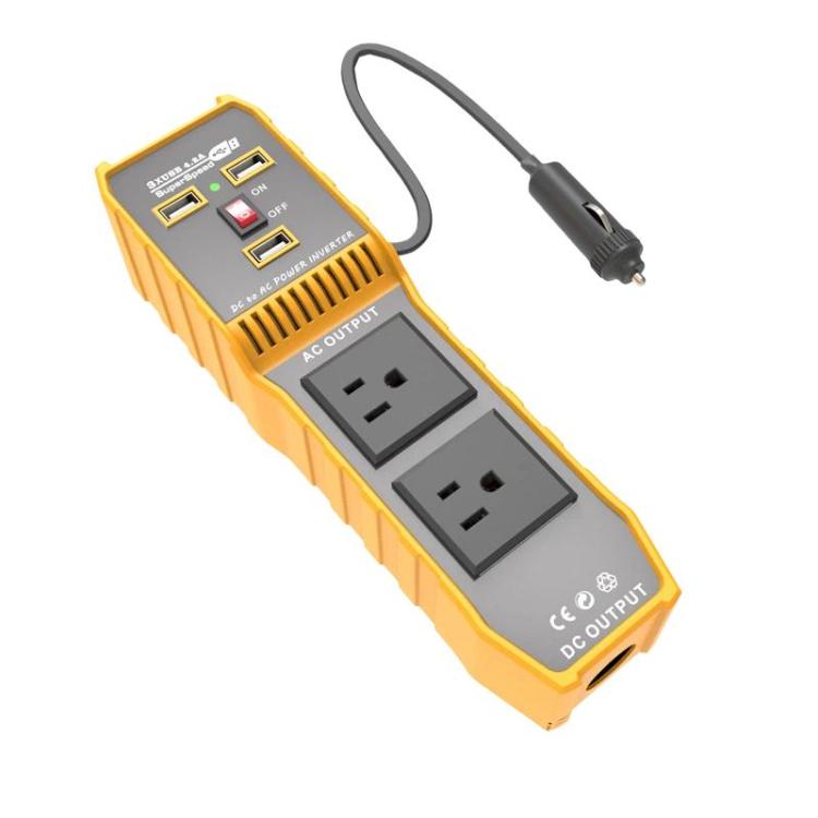 3-USB Dual-Socket Car Power Inverter Vehicle Power Converter US Plug 12V To 110V