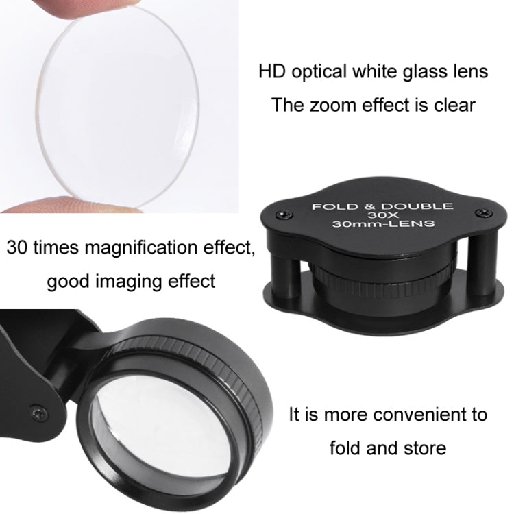 30x 30mm Optical Glass Lens Jewelry Appraisal Folding Magnifier(Carton Package)