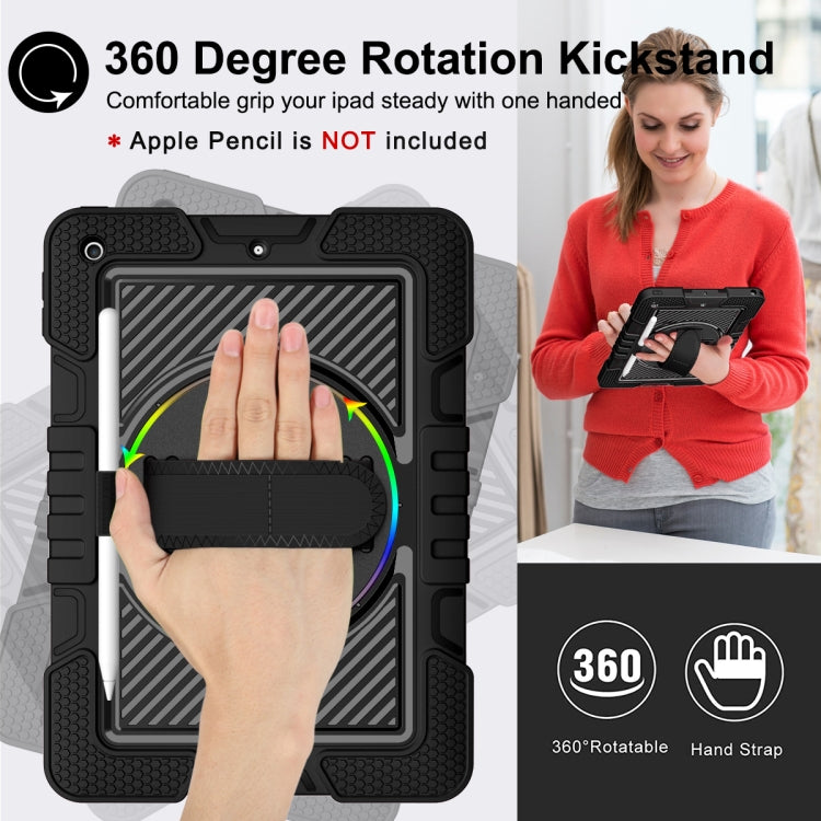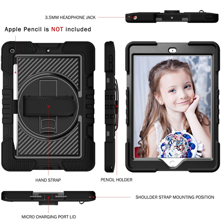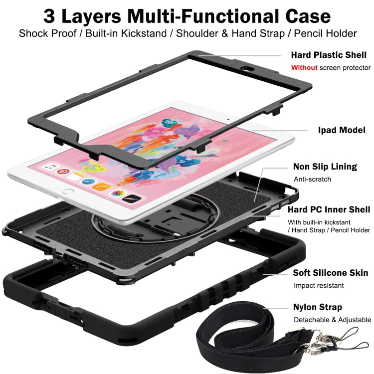 360 Degree Rotation Contrast Color Shockproof Silicone + PC Case with Holder & Hand Grip Strap & Shoulder Strap For iPad 9.7 2018 / 2017 / Air / Air 2 / Pro 9.7 (Black)