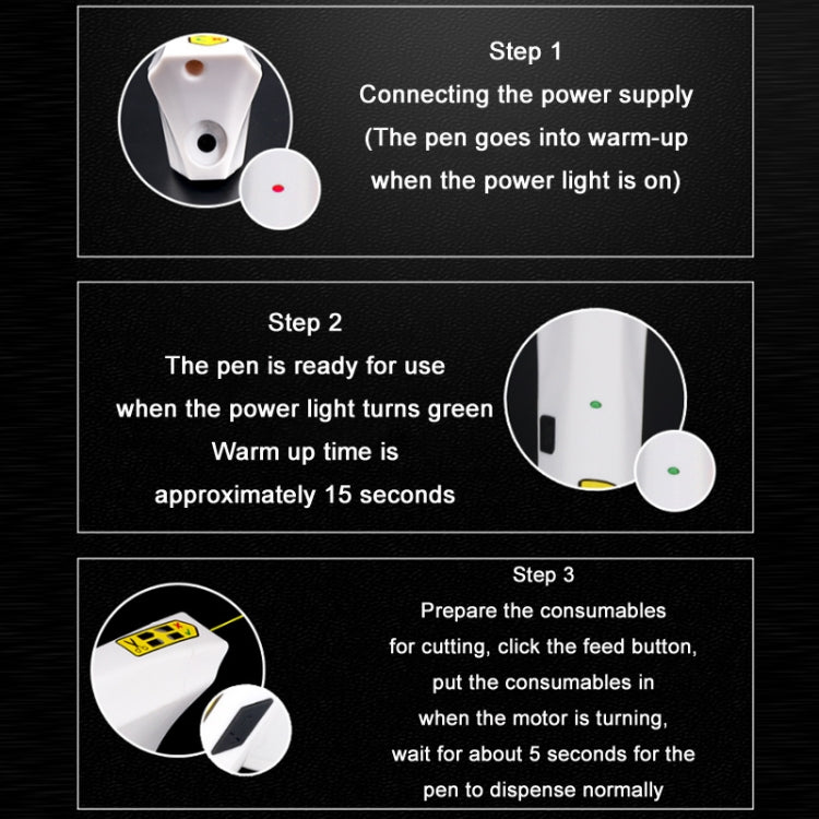 Step 1: Connect the power supply (the pen enters preheat when the power light is on)