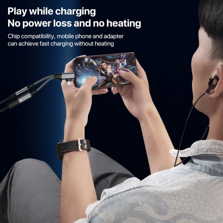 4 in 1 USB-C / Type-C, 8 Pin to 3.5mm, USB-C / Type-C Audio Adapter Cable, Length:70mm(Grey)