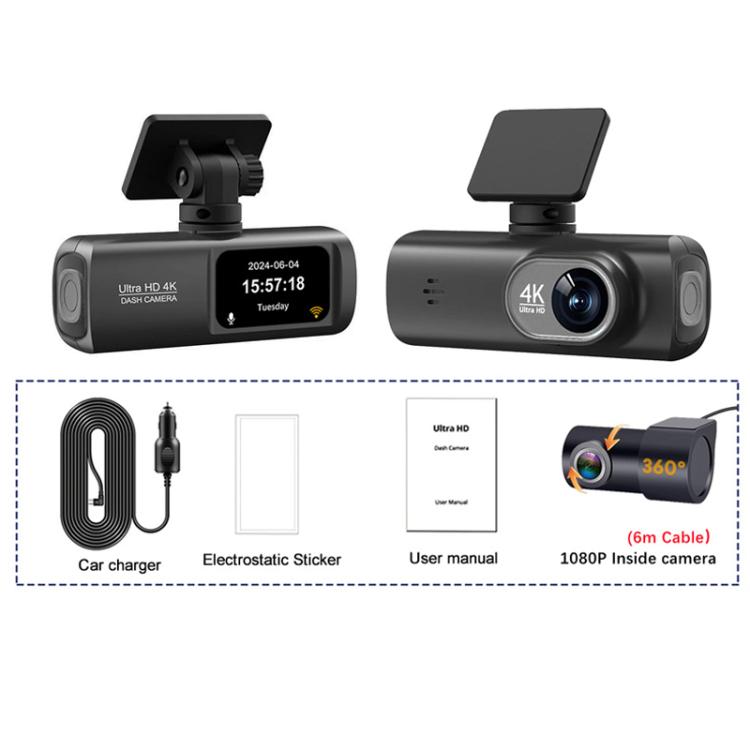 4K Dual Recording WiFi Smartphone Connected Car Dash Cam, Specification: Front+Inside