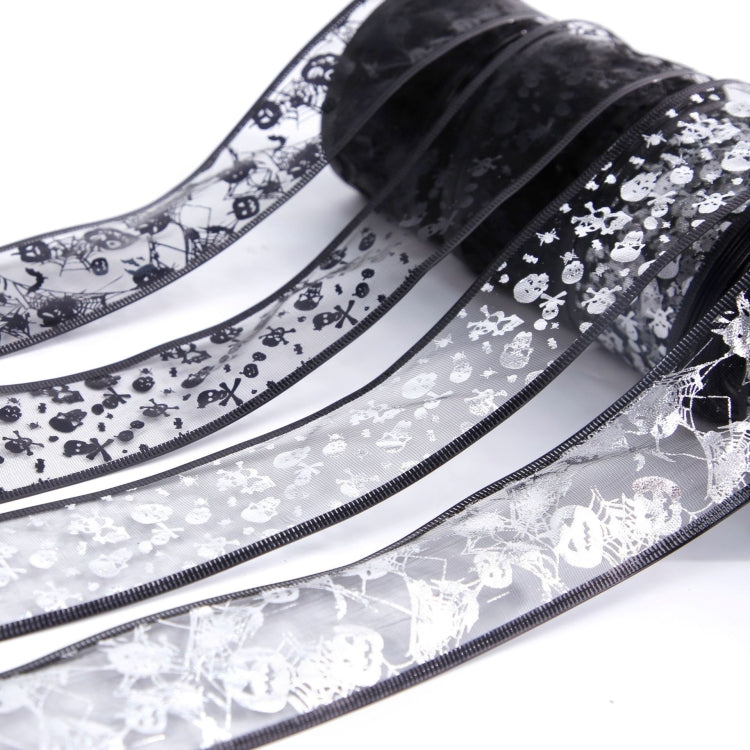 4m Halloween Decoration Gold-stamped Cartoon DIY Bow Ribbon(Silver Skeleton)