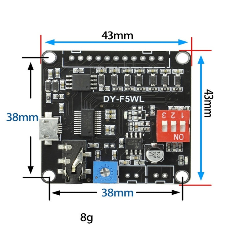 4. Supports MP3 and WAV decoding formats, and supports audio file sampling rates up to 48KHz.