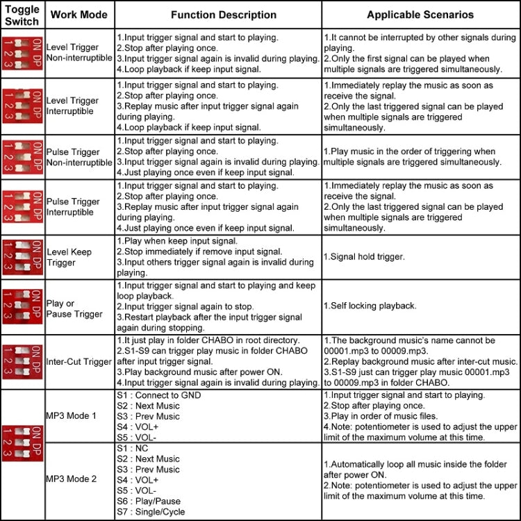 8. DIP switch sets 8 trigger working modes