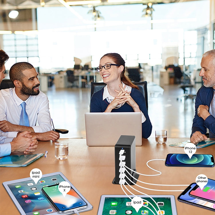 6 in 1 65W PD USB-C / Type-C + QC 3.0 USB + 4 USB Multi-port Travel Charger, UK Plug(Black)