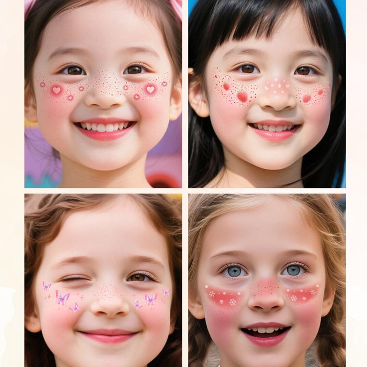6 In 1 Realistic Fake Freckle Tattoos with Blush Effect Waterproof Cheek Stickers for Kids & Adults