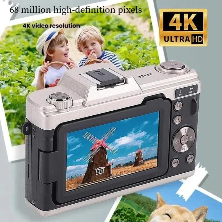 68MP Digital Camera Student CCD Travel Portable Retro Women Starter Flip Screen Card Camera(Black Standard+Android OTG Card Reader)