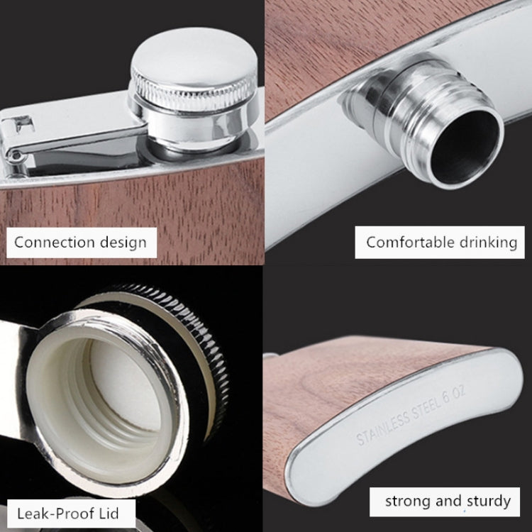 6oz Wood Leather Hip Flask Stainless Steel Whiskey Wine Alcohol Flagon(Style 3)