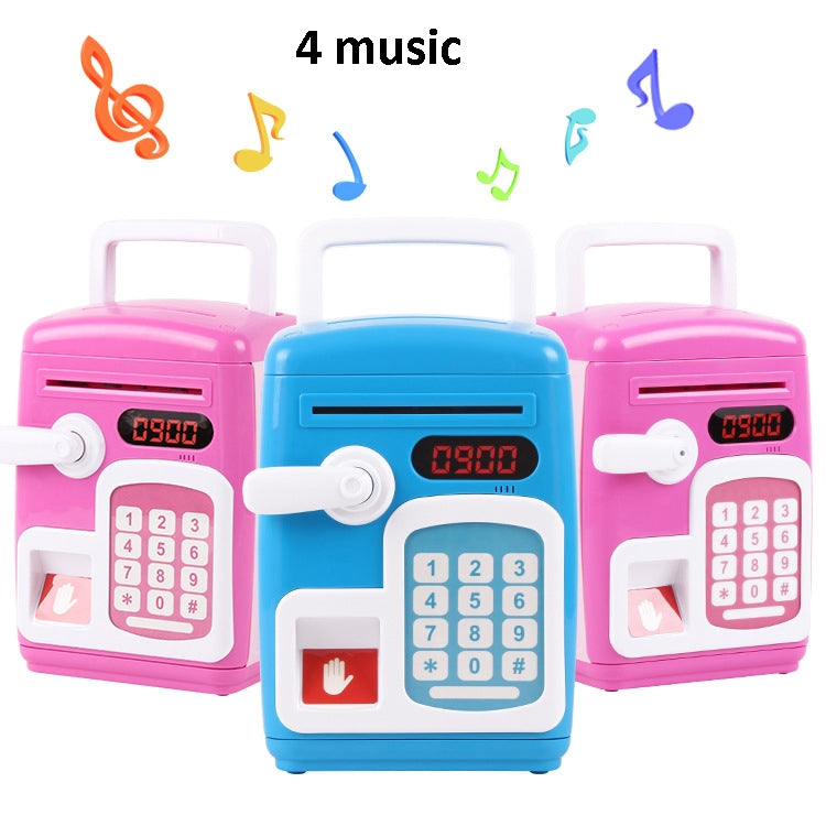 8001 Fingerprint Sensor Unlock ATM Piggy Bank Automatic Rolling Money Simulation Password Safe Toy(Big-headed Rat Blue)