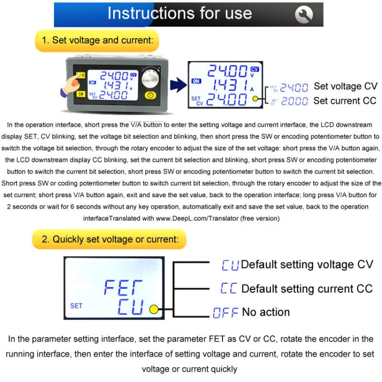 5. Output overcurrent protection: 0-5.2A adjustable, default 5.2A