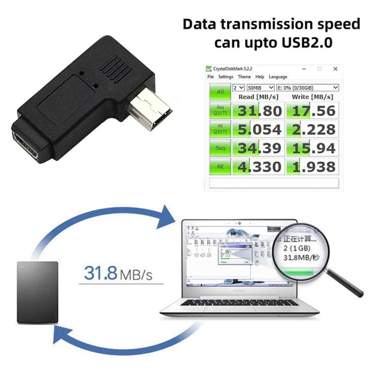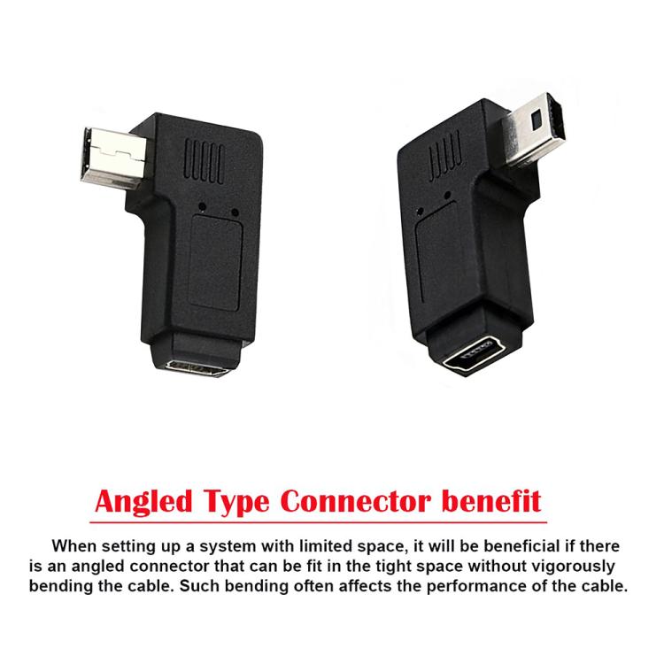 90 Degree Mini USB Male to Mini USB Female Extension Left-angle Adapter