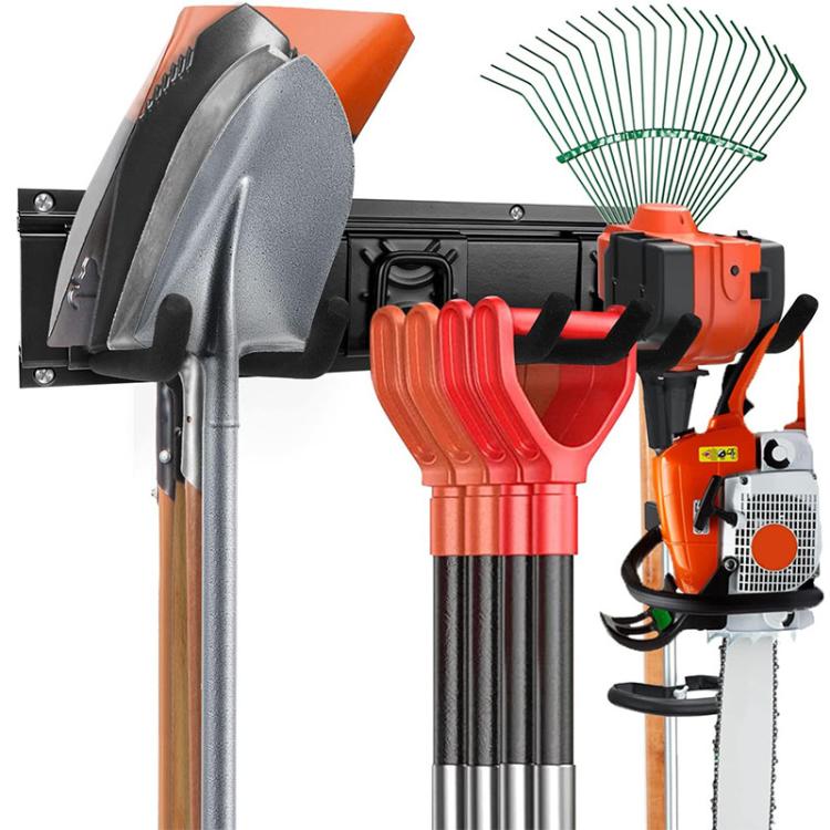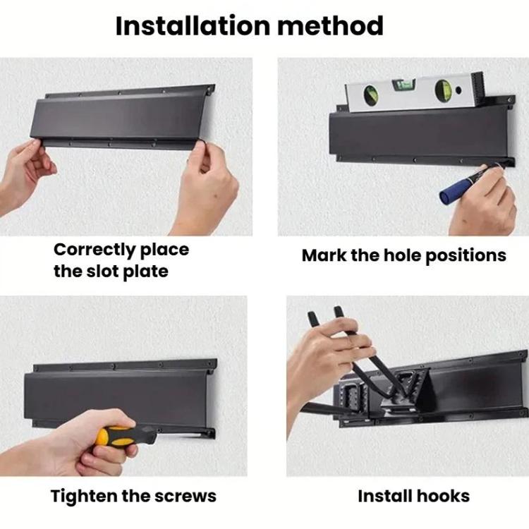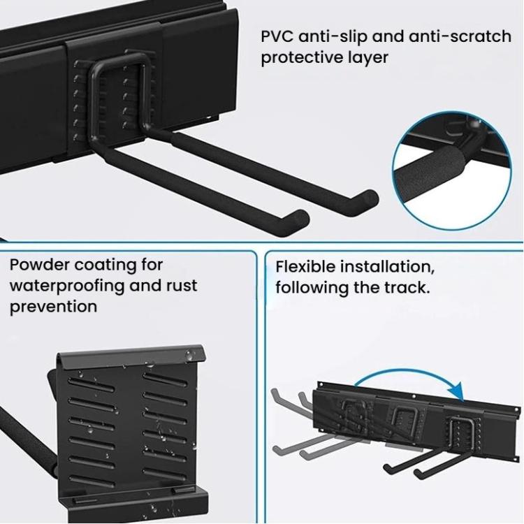 9pcs Wall Mounted Metal Slatwall Hooks Garden Tool Detachable Hanger(Black)
