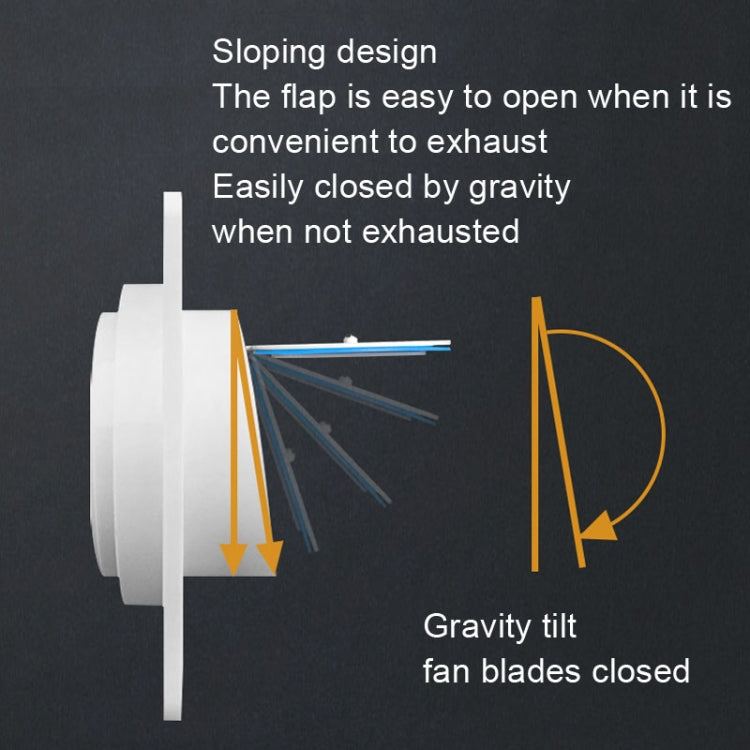 1. The inclined design makes it easy to open the flap when exhausting, and is easy to close due to gravity when not exhausting