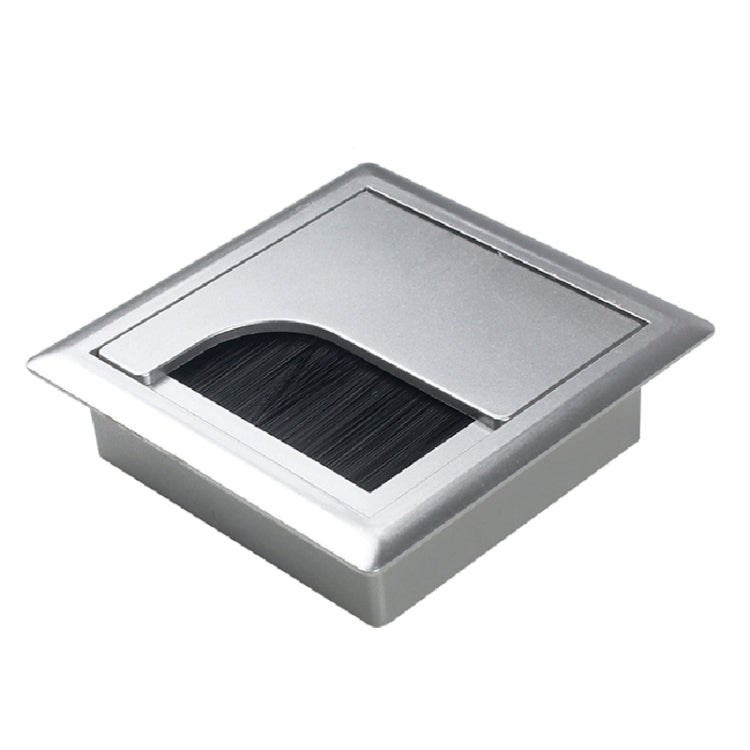 ABS Table Rectangle Wire Hole Cover Outlet Port With Brush PC Desk Cable Organizer, Size: 80x80mm Silver