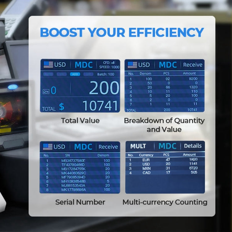AL-920 Dual CIS Image Multi-Currency Vertical Currency Counter, Specifications:AU Plug
