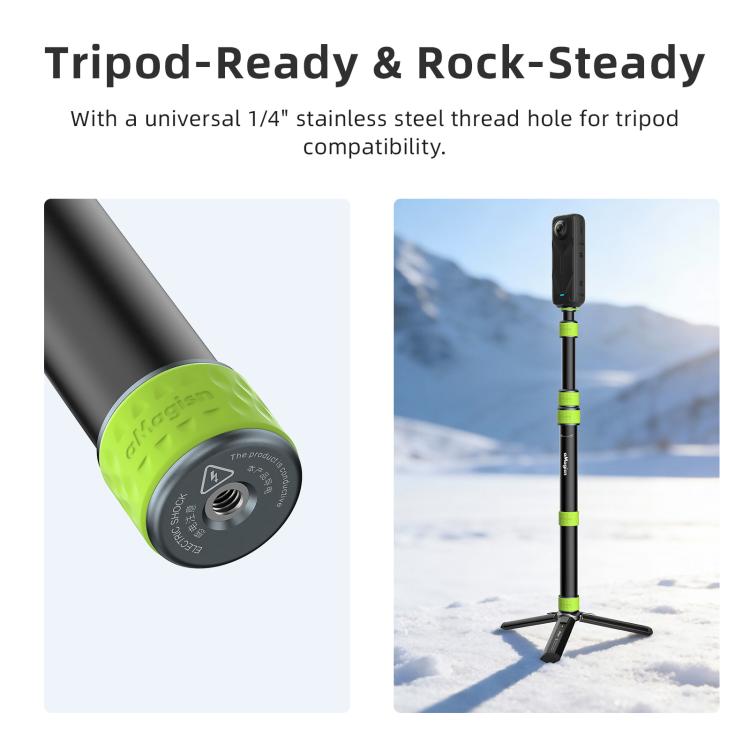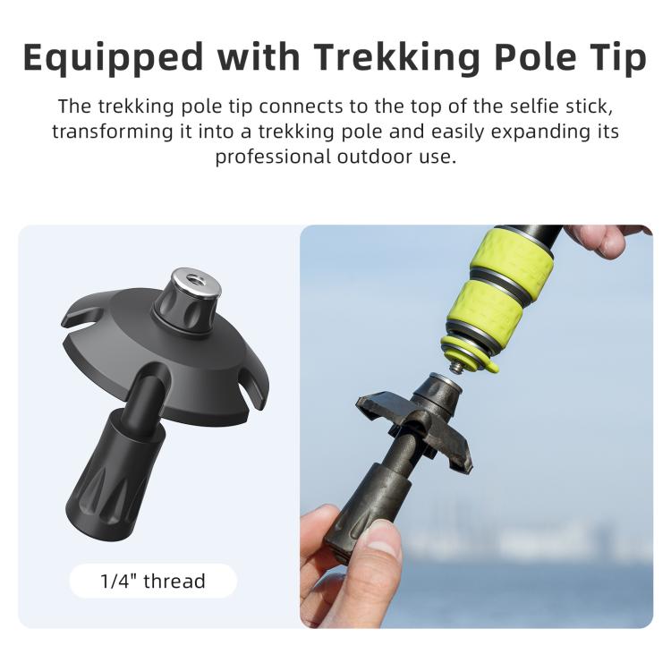 7. The bottom of the pole is embedded with a standard 1/4-inch stainless steel thread, allowing you to easily attach it to a tripod for stable ground-level shooting.