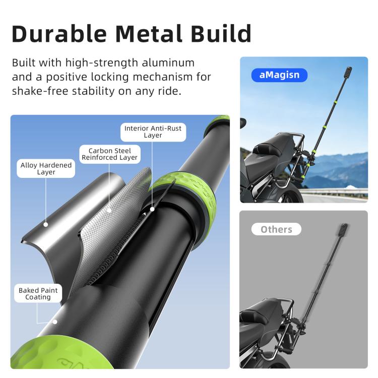 3. Sturdy & Stable Design: Constructed from high-strength aluminum alloy, the pole is built to be durable. It incorporates a secure locking mechanism on each section to prevent wobbling during rides, ensuring stable and reliable filming.