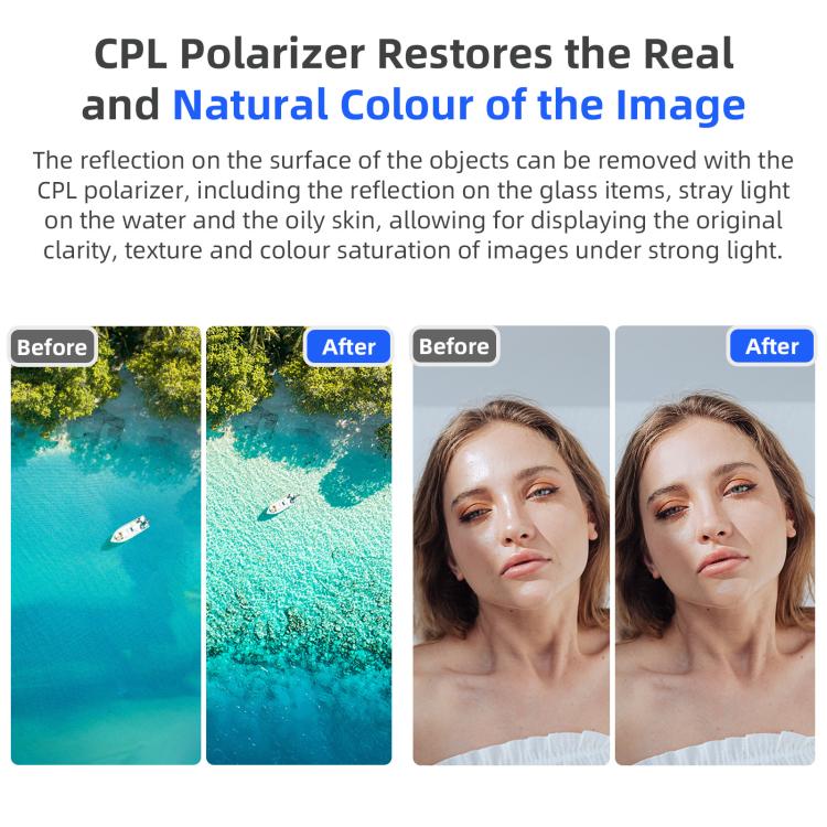7. The CPL lens can eliminate the reflection on the surface of the object, allowing the object to restore the original clarity, texture and color saturation in an overly bright environment