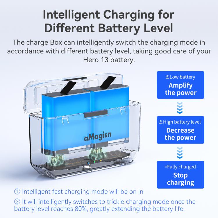 aMagisn Fast Charging Battery Charger Case for GoPro HERO13 Black/12 Black /11 Black /10 Black /9 Black(AP23)