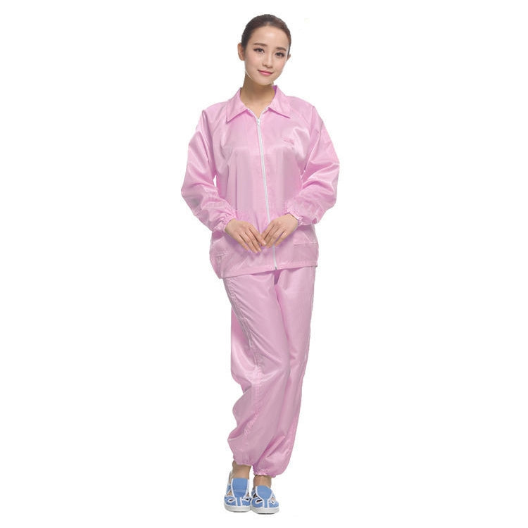 Anti Static Split Lapel Dustless Clothing Food Protection Stripe Clean Clothes, Size:M(Pink)