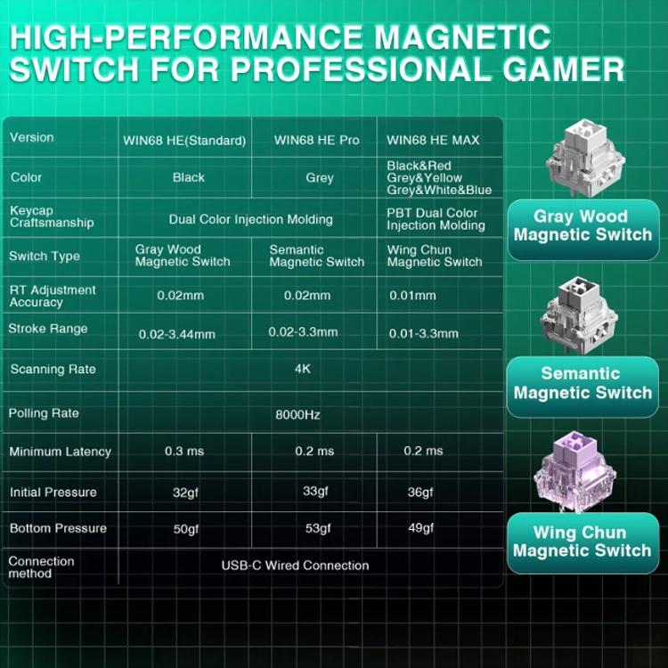 AULA WIN68HE Standard Version 68 Keys RGB Wired Keyboard(Side Printed White Grey Wood Magnetic Axis)