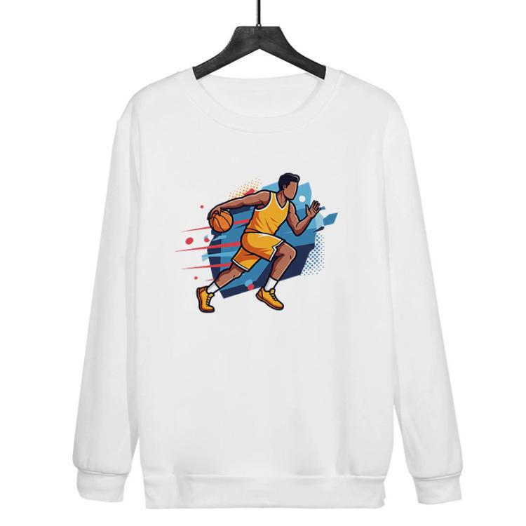 Basketball Player Printed Casual Loose Round Neck Sweatshirt Print On Your Demand, Size:S(White)
