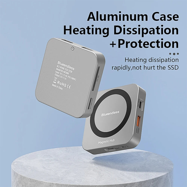 3. Support NVMe protocol (B&M Key/M Key) solid-state drive with capacity expansion up to 2TB. It supports 2230-size drives and provides up to 10Gbps read/write speeds for fast data transfer and backup, and is backward compatible with USB 3.1 Gen1 and USB 3.0.
